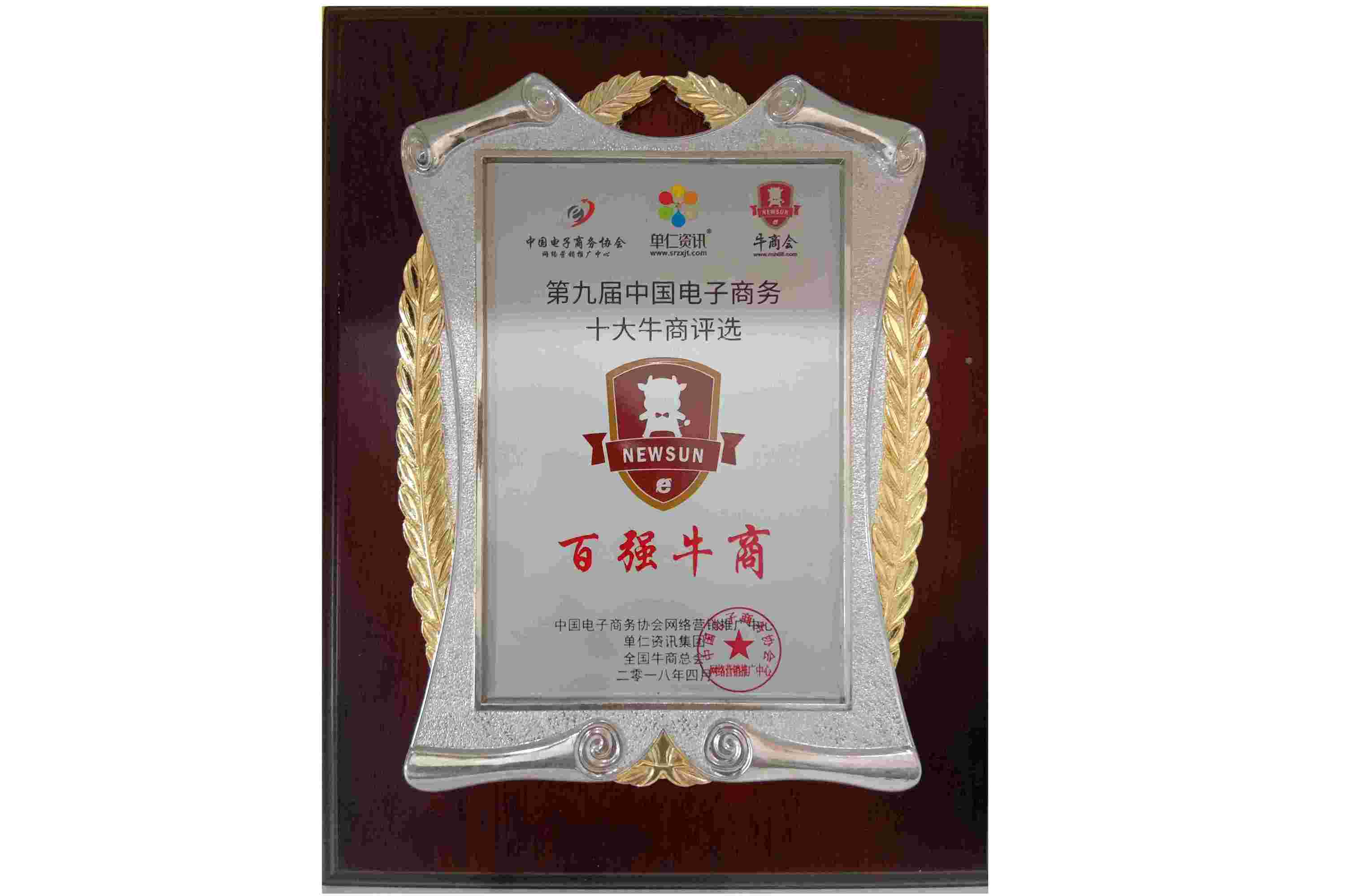 2018年4月安防工程商成都萬全電子總經(jīng)理李佳勇先生在全國電子商務(wù)十大牛商評選活動中,獲得“全國百強(qiáng)牛商”稱號。