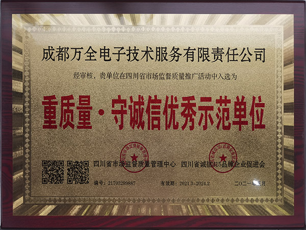熱烈慶祝成都萬全電子榮獲"重質(zhì)量·守誠信優(yōu)秀示范單位"稱號(hào)