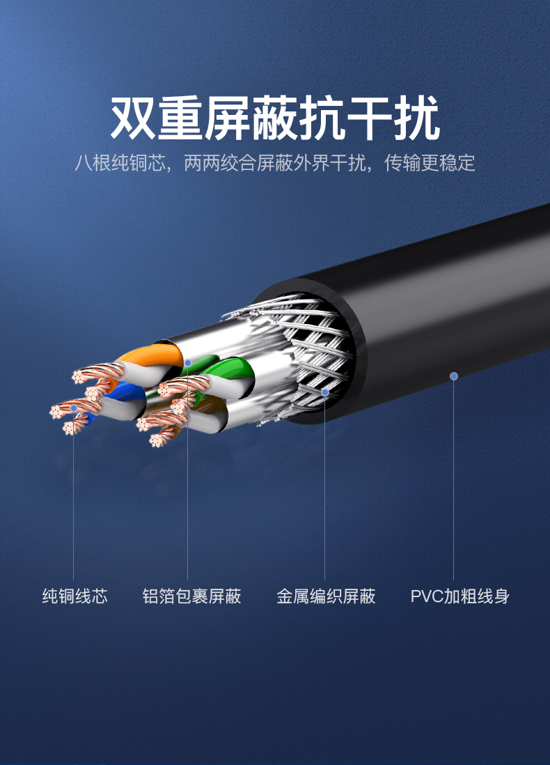 傳輸性能滿足并優(yōu)于六類標準。完全支持千兆以太網(wǎng)應(yīng)用,最高傳輸頻率350MHz,為未來應(yīng)用提供額外帶寬。中心為十字骨架隔離設(shè)計,增強了帶寬和網(wǎng)絡(luò)性能。導體采用23AWG優(yōu)質(zhì)無氧銅線(99.99%);采用鋁箔總屏蔽結(jié)構(gòu),改善線纜外部串擾及衰減;線纜成軸包裝,保護結(jié)構(gòu)穩(wěn)定。