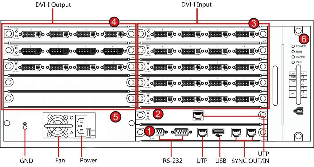 | 2/3.輸入業(yè)務(wù)板插槽 | 6 個(gè)輸入板槽位,支持 VGA、DVI、HDMI、BNC、YPbPr、HDBaseT、DP 及 IP 源多種信號解碼 |